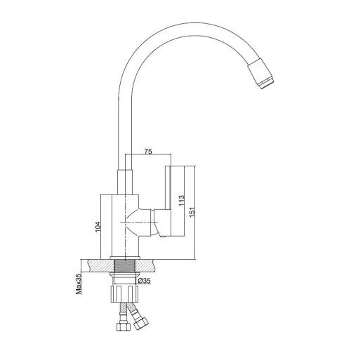 Baterie sanitara pentru chiuveta de bucatarie din colectia FLEXI de la brandul CasaBlanca, pipa flexibila, operare monocomanda.