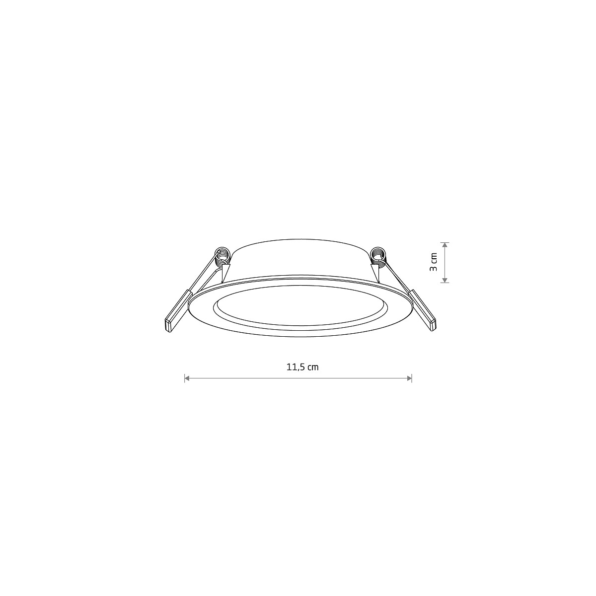 Spot LED încastrat MYKONOS cu lumină caldă de 3000K și flux luminos de 360 lm, are dimensiuni compacte (11.5 cm diametru, 3 cm înălțime). Sursa LED integrată de 6W este eficientă energetică, iar montajul încastrat permite integrarea perfectă în interior.