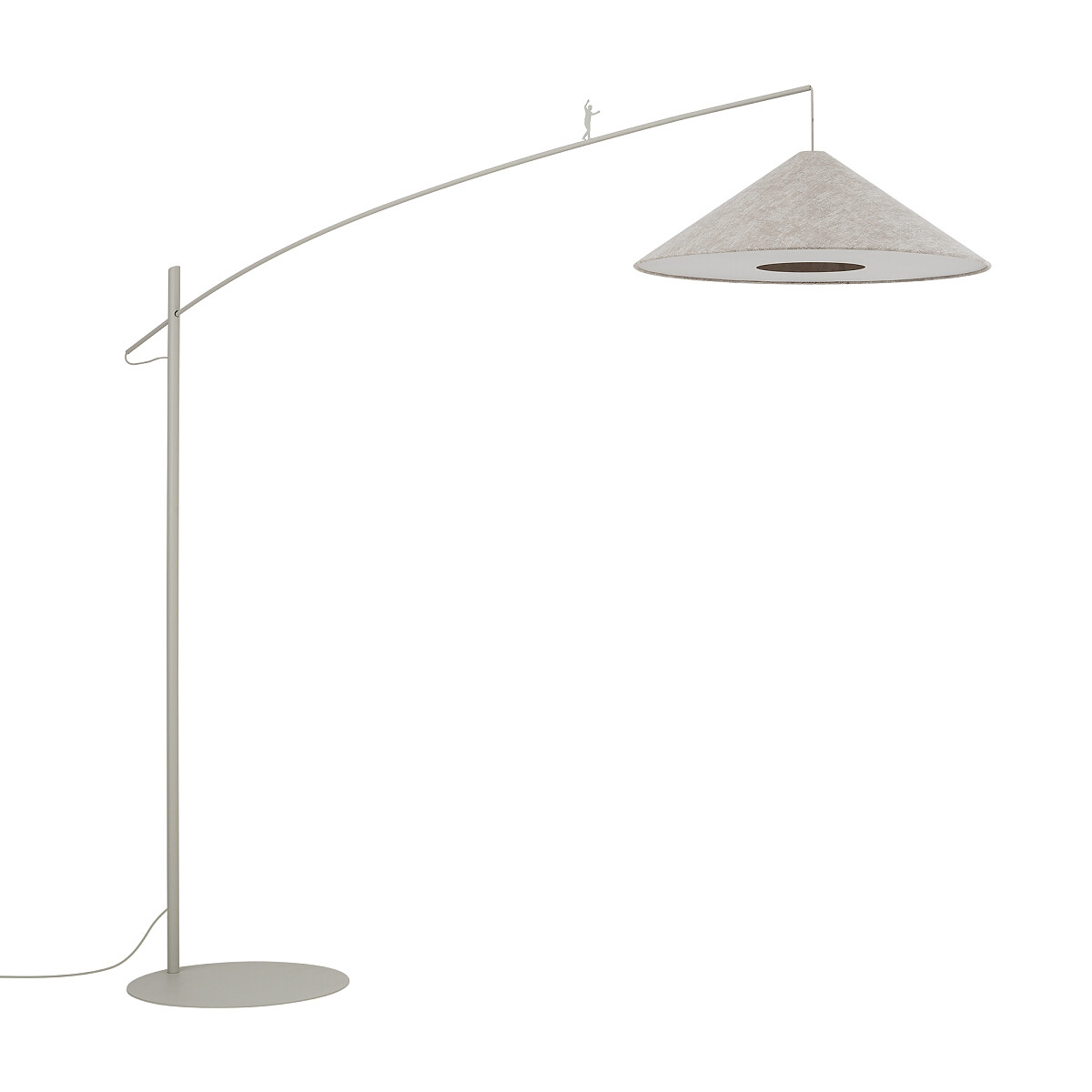 Un detaliu distinctiv al lampadarului POISE este elementul decorativ amplasat pe tijă, reprezentând un bărbat care face echilibristică, simbol al echilibrului și al designului creativ. Lampadarul funcționează cu bec tip E27 (neinclus), oferind libertatea de a alege intensitatea și temperatura de culoare potrivită. Utilizarea este simplă și practică datorită comutatorului ON/OFF poziționat pe cablu.