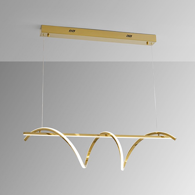 Lampa suspendată LED ASURE de la Schuller este o piesă de iluminat modernă, cu un design sculptural și fluid, concepută pentru interioare contemporane și spații premium. Structura sa elegantă este realizată din oțel inoxidabil cu finisaj auriu lucios, oferind un aspect sofisticat și rafinat, care atrage imediat privirea.